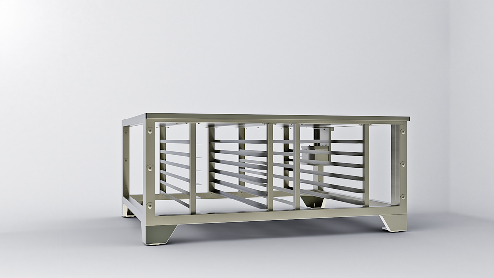 La structure, entièrement en acier inoxydable, permet de placer facilement de 6 à 18 plaques de cuisson de 40×60 ou 46×66. En outre, la structure est facile à nettoyer et à entretenir et ajoute une touche de robustesse au four.